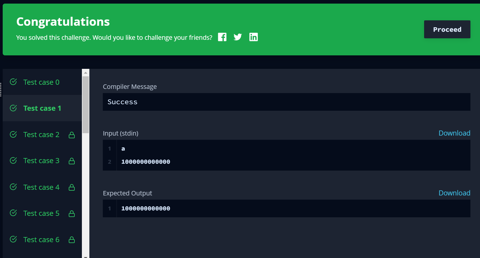 아까 통과하지 못했던 n = 1000000000000 으로 주어졌을때의 Test case를 포함한 나머지 Test case들도 통과함을 확인할 수 있다.