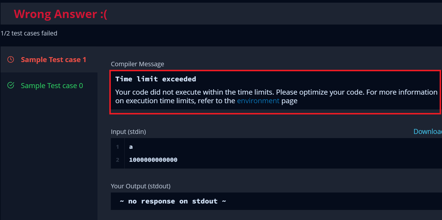 그렇다. 너무 쉽게 풀어가려고 했다. example로 적은수의 최대 길이값이 이 주어졌을 때에는 통과하였지만, 많은수의 최대 길이값이 주어졌을 때에는, 제한된 시간 내에 계산되지 못하여서 통과하지 못하였다.