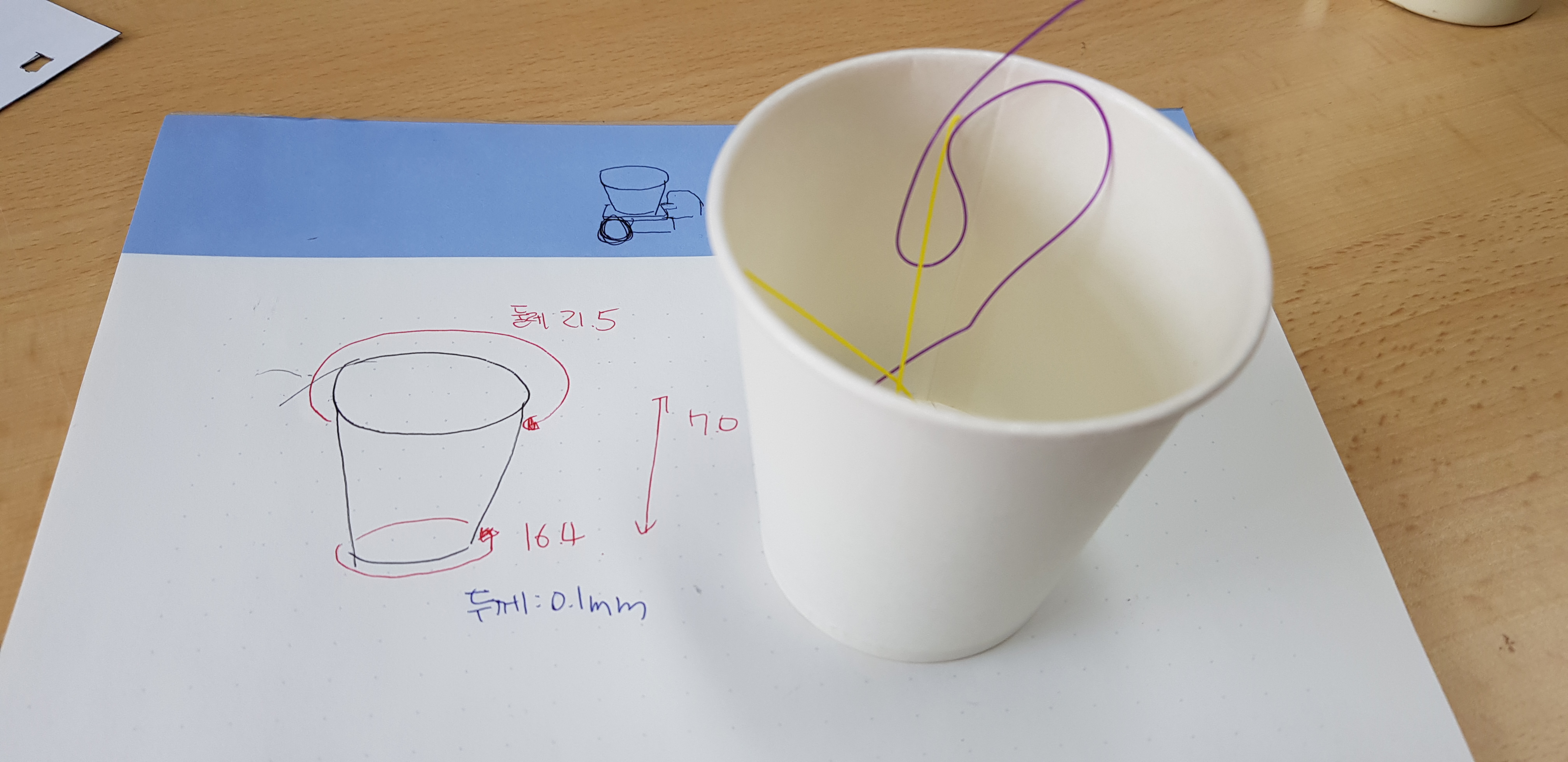 처음에 3D프린터에 접하게 되면서, 종이컵의 치수를 재어, 치수대로 3D모델링을 하여 컵홀더를 제작해보기도 하였다.