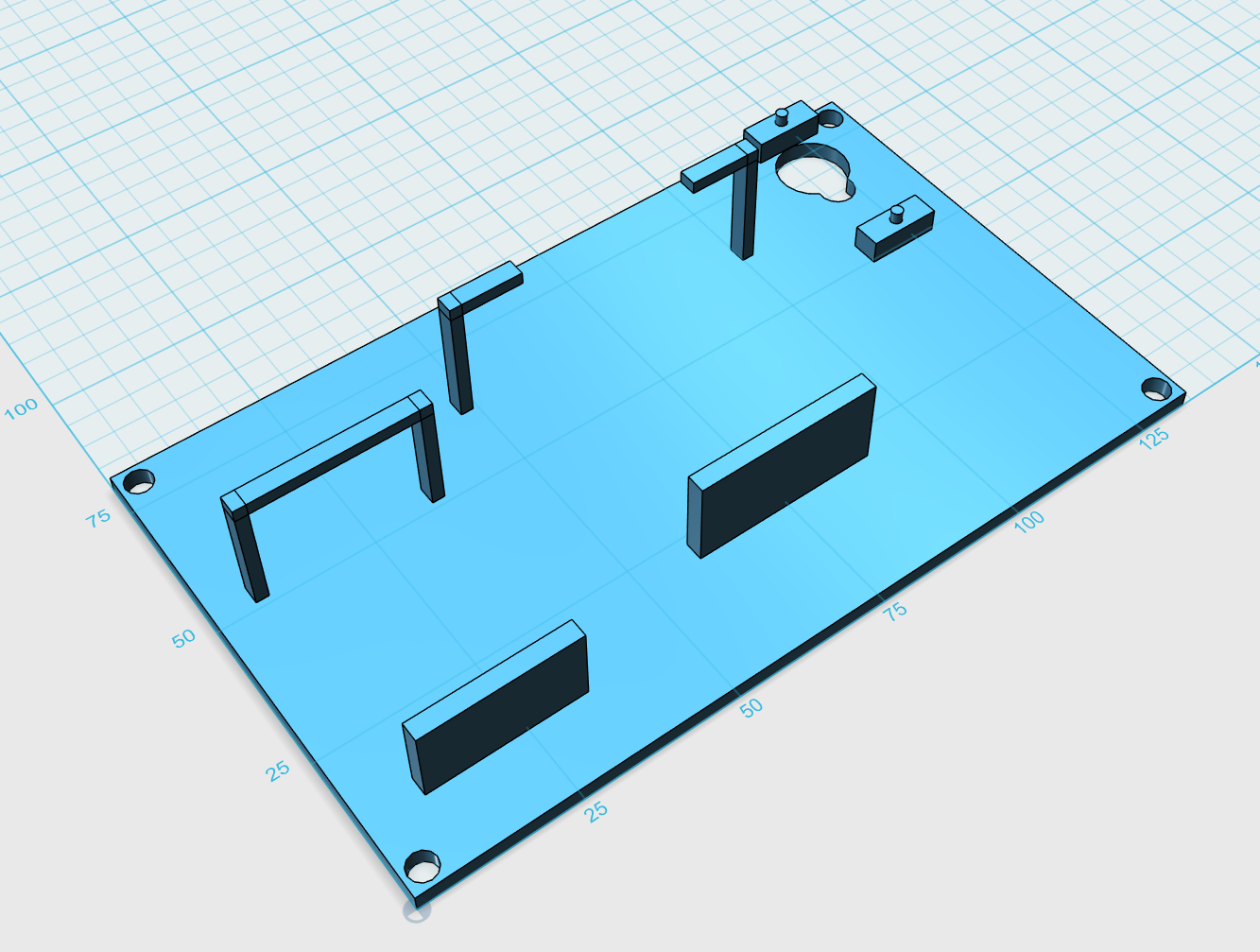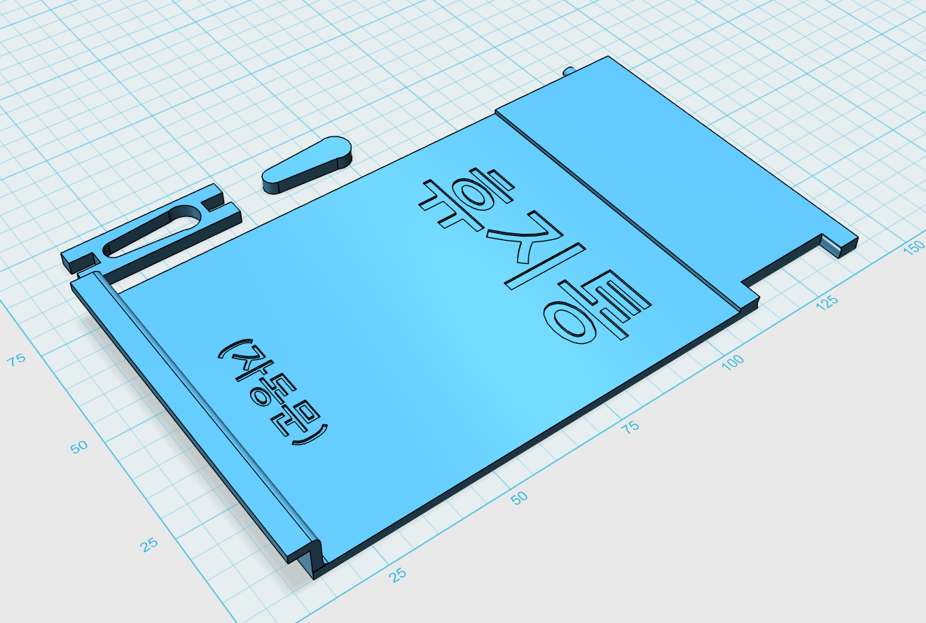 보드를 부착할 판을 설계하였다. 각 부품의 치수를 재어서 고정할 수 있도록 판을 모델링 하여 출력하였다.