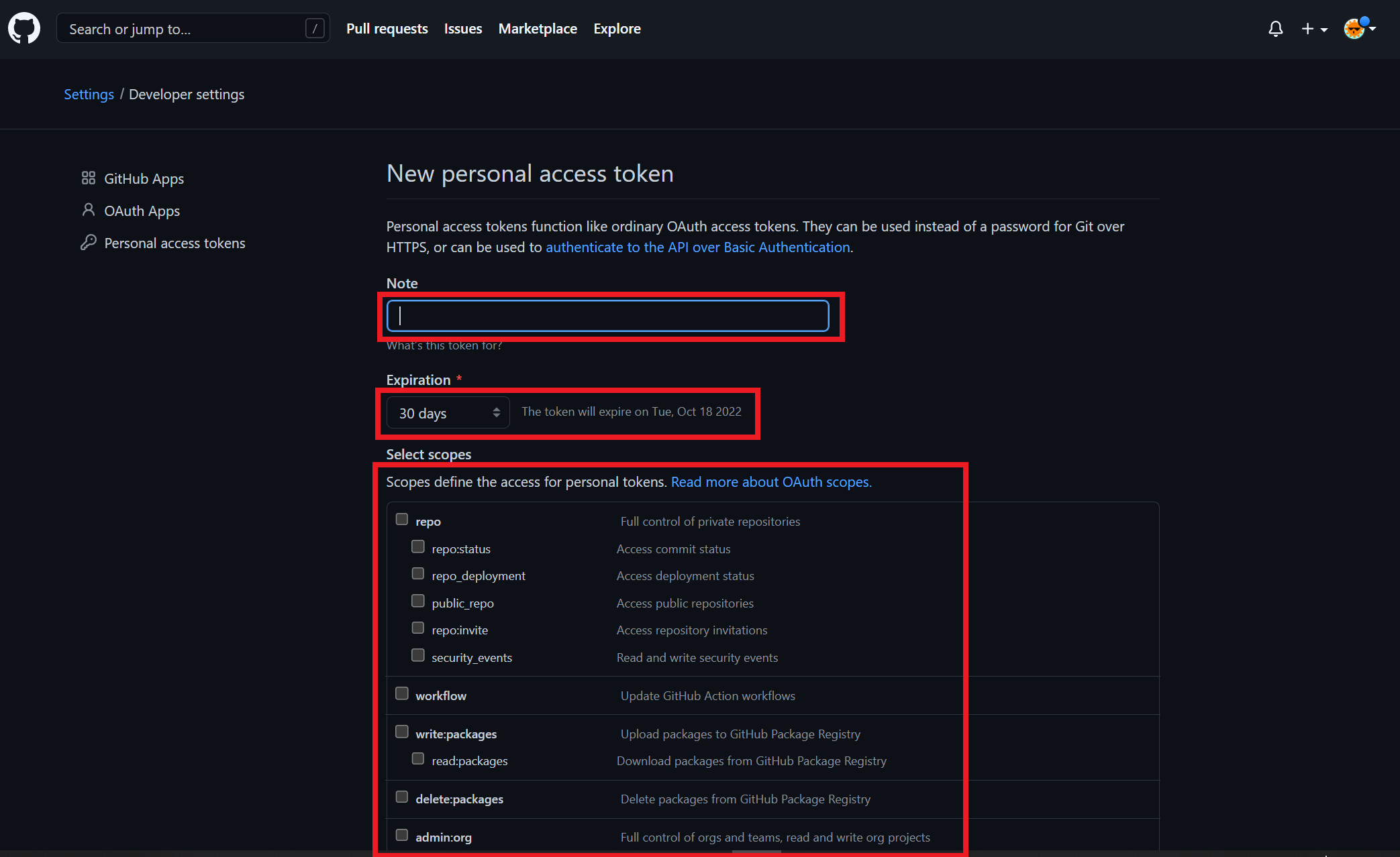 - Select scopes: 해당 토큰에 부여할 권한을 선택한다.