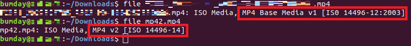 일단 당연하게도 mp4형식의 문제는 아니었다. 그래서 다른 재생 잘 되는 mp4영상과 내가 처리한 mp4영상을 Ubuntu의 file커맨드로 비교해 보았다.