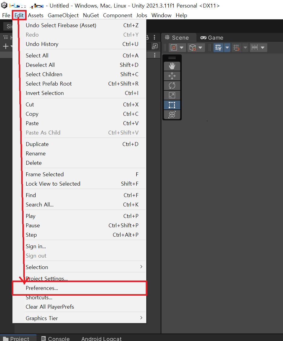 Step2: Unity에서 Edit → Preferences → External Script Editor항목으로 간다.