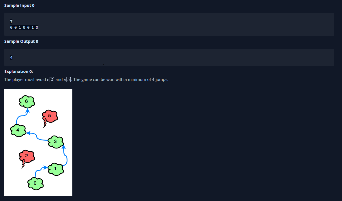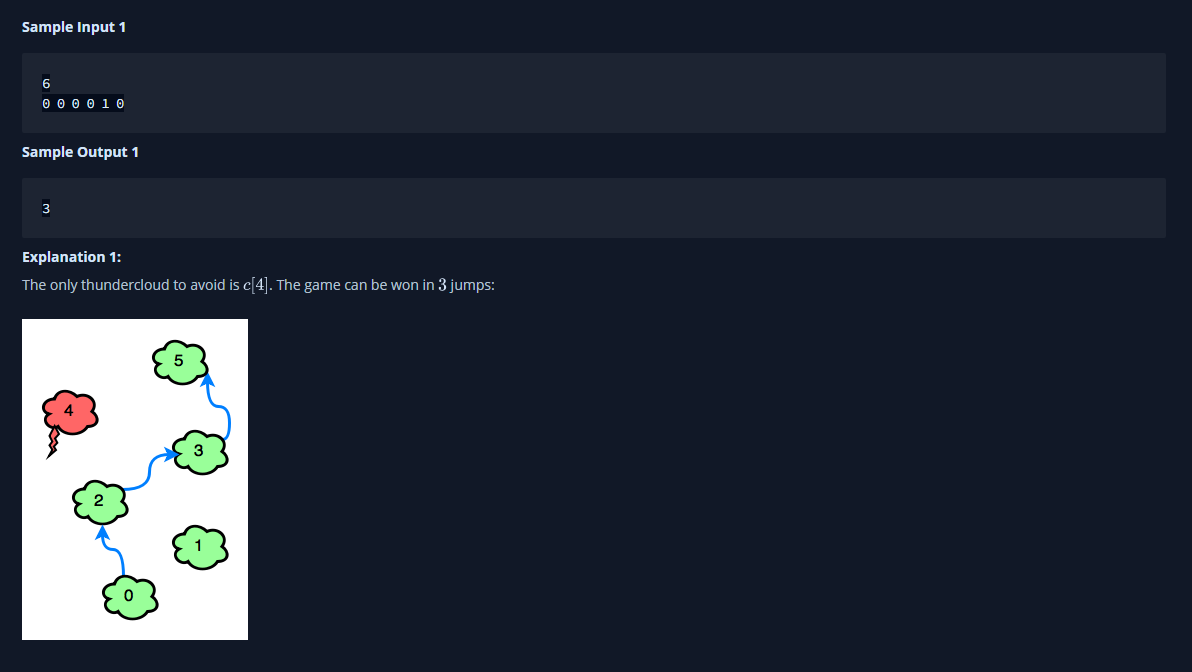 - 마지막 구름까지 최소 몇번의 점프를 해야 도달할 수 있는지 구하면 된다.