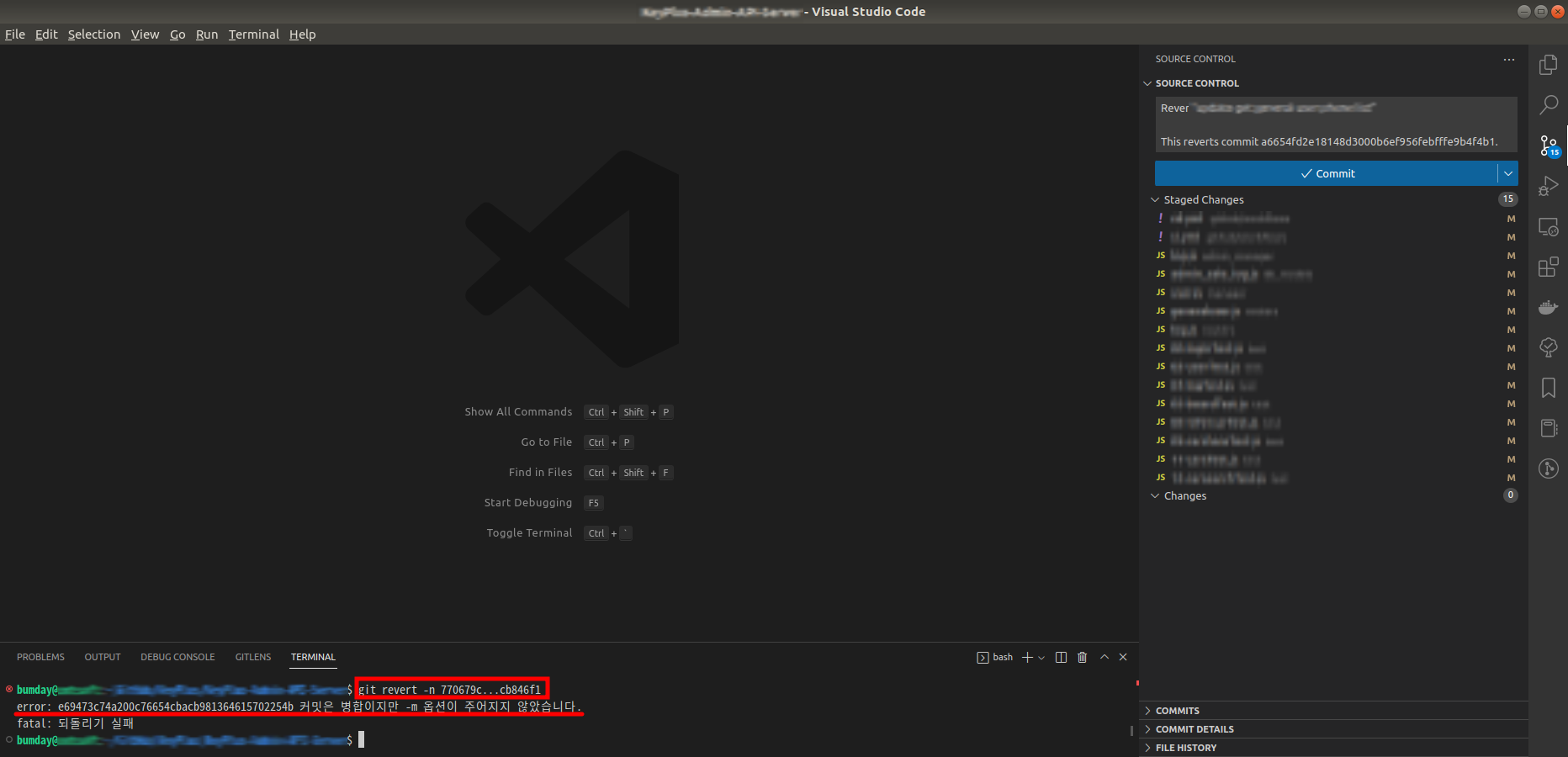 이때, 나는 --continue옵션으로 revert를 계속 하고자 했다.