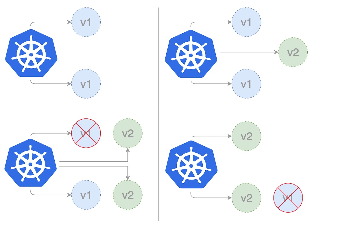 만일 애플리케이션 컨테이너를 수동으로 업데이트하는 프로세스는 시간이 많이 걸리고 효율이 떨어진다. 서비스를 다음 버전으로 업그레이드하려면 새 버전의 파드를 시작하고, 이전 버전의 파드를 중지하고, 대기한 후 새 버전이 성공적으로 시작되었는지 확인해야 한다. 실패한 경우에는 이전 버전으로 모두 롤백해야한다.