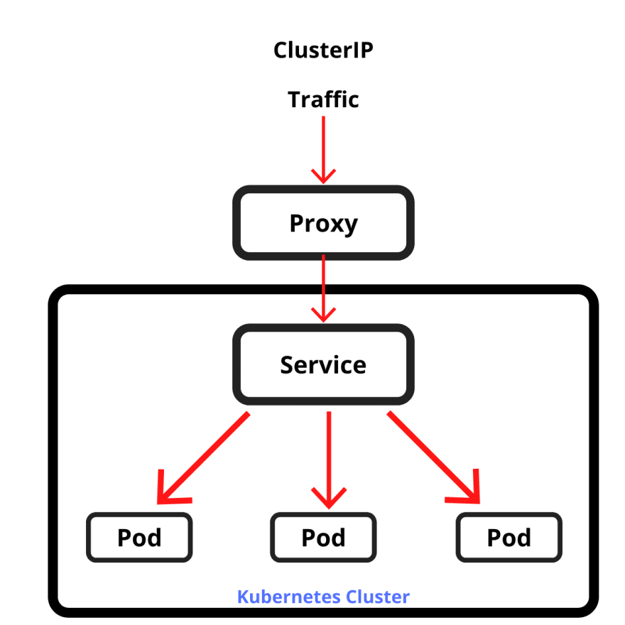 이 유형의 서비스는 <ClusterIP> 로 들어온 클러스터 내부 트래픽을 해당 파드의 <파드IP>:<targetPort>로 넘겨주도록 동작하므로, 오직 클러스터 내부에서만 접근 가능하게 된다. 쿠버네티스가 지원하는 기본적인 형태의 서비스다.