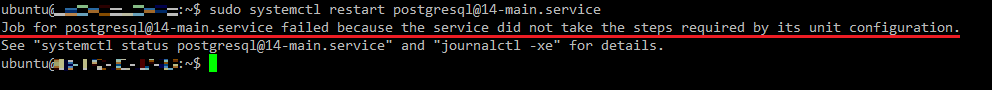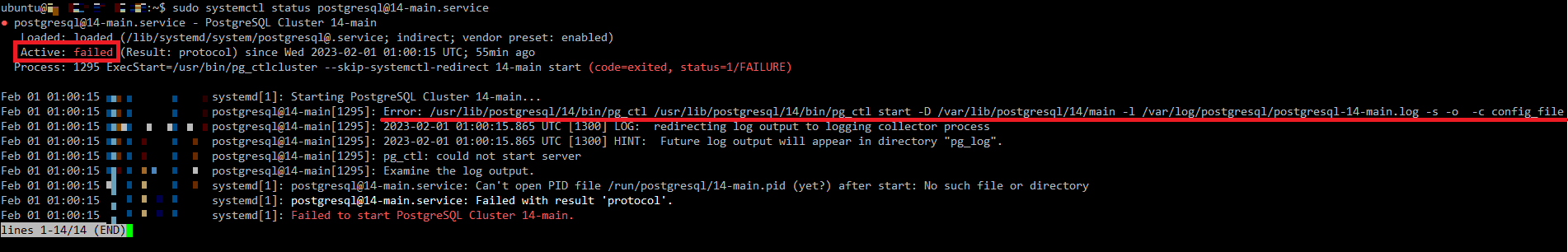 수정 후 재시작하였는데 다음과 같이 PostgreSQL 서비스가 죽어서 재실행 되지 않았다.