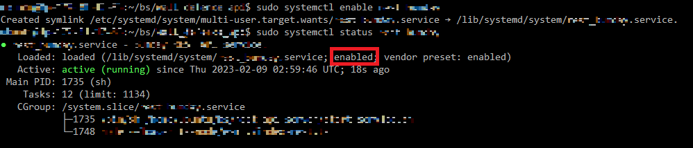 그 후 다시 서비스 상태를 확인해보면 다음과 같이 enabled상태가 되었음을 확인할 수 있다.