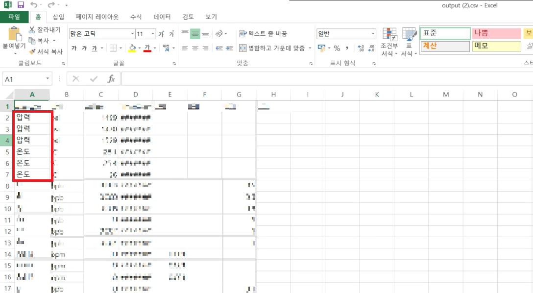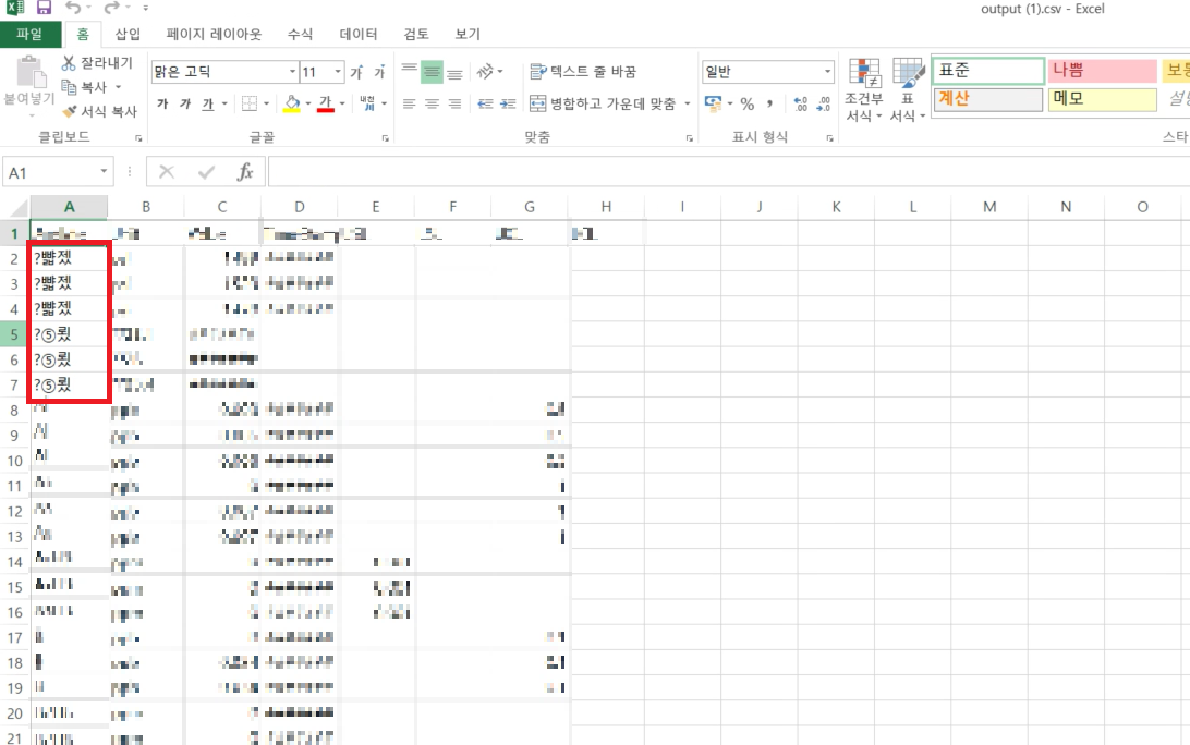 위와 같이 데이터를 수정하여 저장한 후, 확인해보면, csv파일의 인코딩 방식이 “UTF-8(BOM)”으로 지정되게 된다. 이를 마찬가지로 Microsoft Excel로 열어보면, 한글이 정상적으로 보임을 확인할 수 있다.