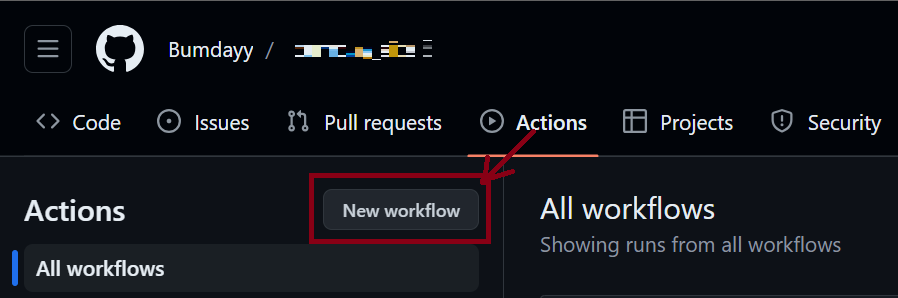 GitHub의 repository 페이지에서 "Actions" > "New workflow" 를 누른다.