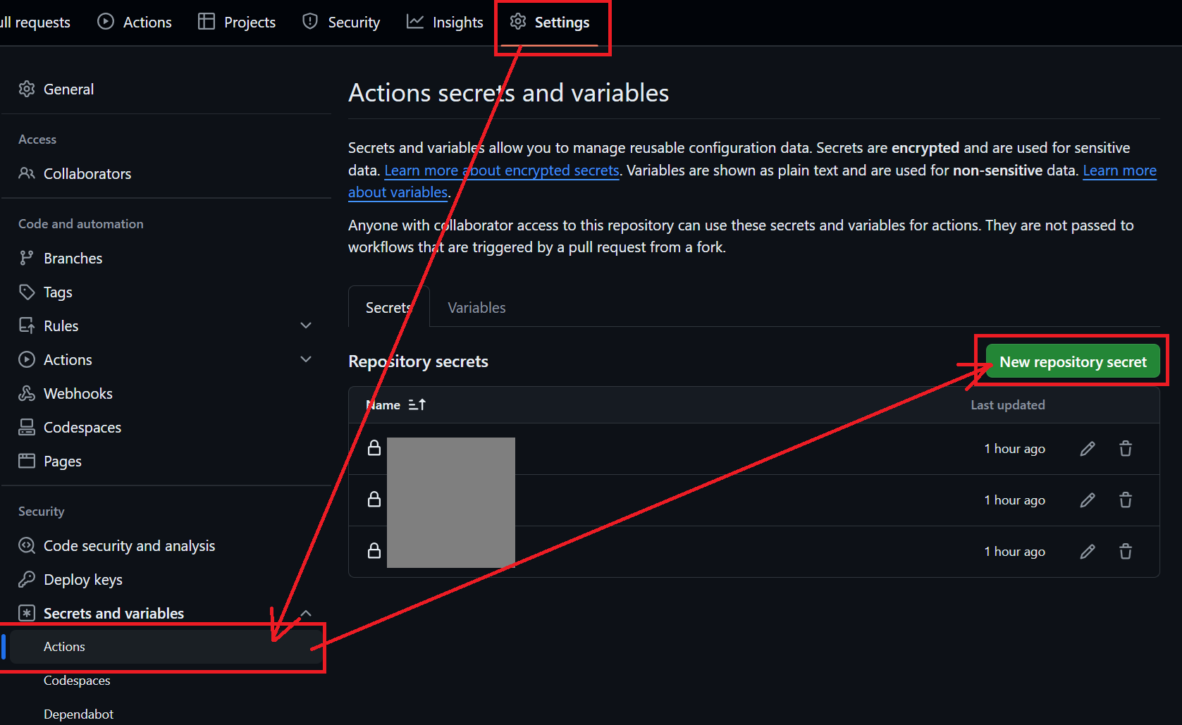 그런 다음, GitHub Action workflow에서 사용할 Docker Hub Username, Password를 설정해 줄 것이다.