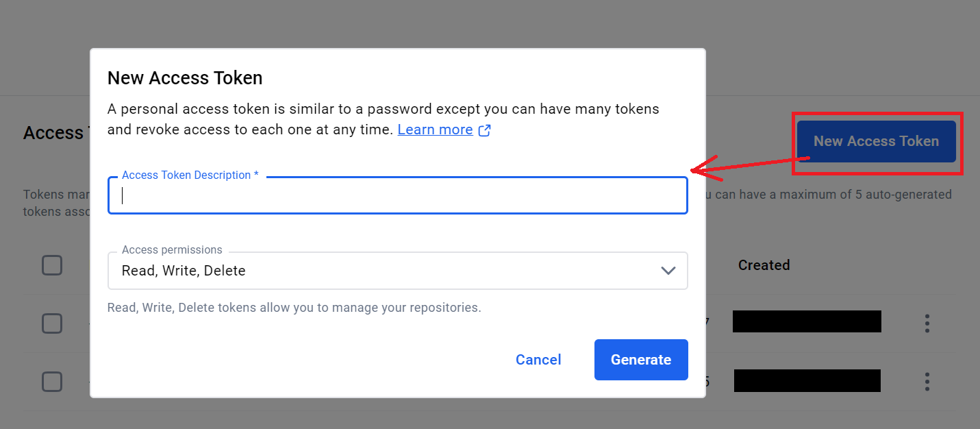 토큰의 설명을 작성해 주고 (EX: DOCKER_HUB_TOKEN)