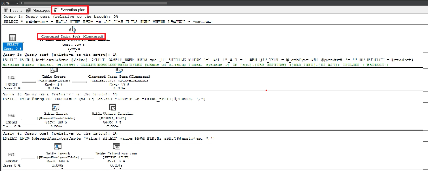이후 쿼리를 실행하면 결과 창 아래에 Execution Plan 탭이 표시되며, 여기서 SQL Server가 쿼리를 처리한 경로를 시각적으로 볼 수 있다. 인덱스가 사용된 경우 ,각 작업에서 어떤 인덱스가 사용되었는지, 풀 스캔(Full Table Scan)이 발생했는지 등을 확인할 수 있다.