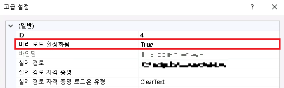 3. IIS에서 "Preload Enabled" 설정 활성화