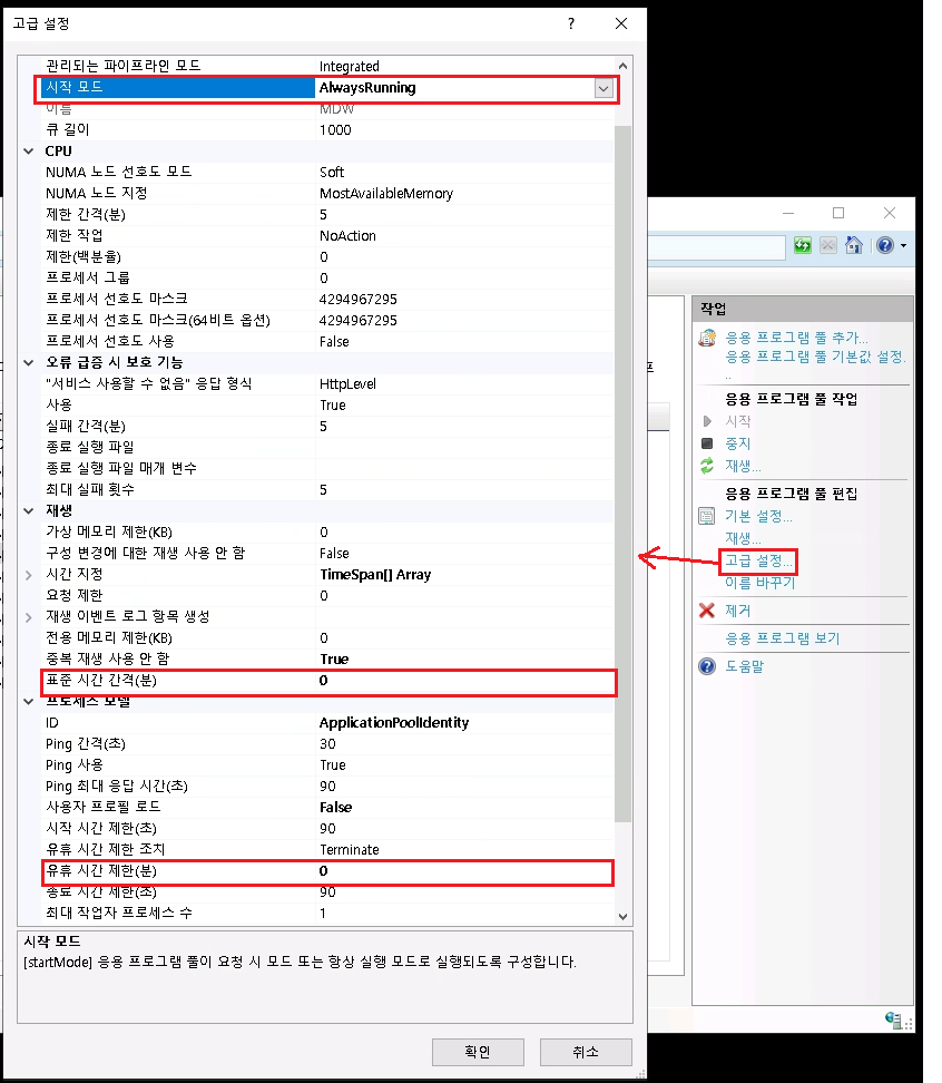 이렇게 설정하면 불필요한 앱 풀 비활성화 및 재시작을 방지할 수 있다.