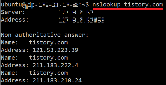 nslookup tistory.com