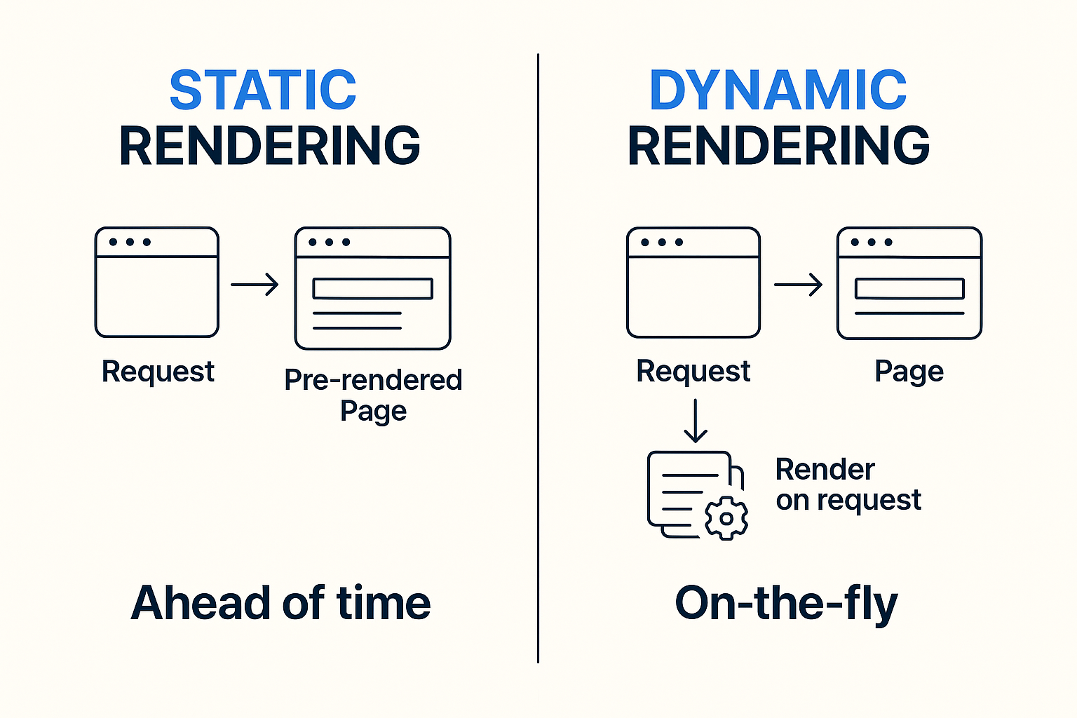 | 항목 | 정적 렌더링 (Static) | 동적 렌더링 (Dynamic) |