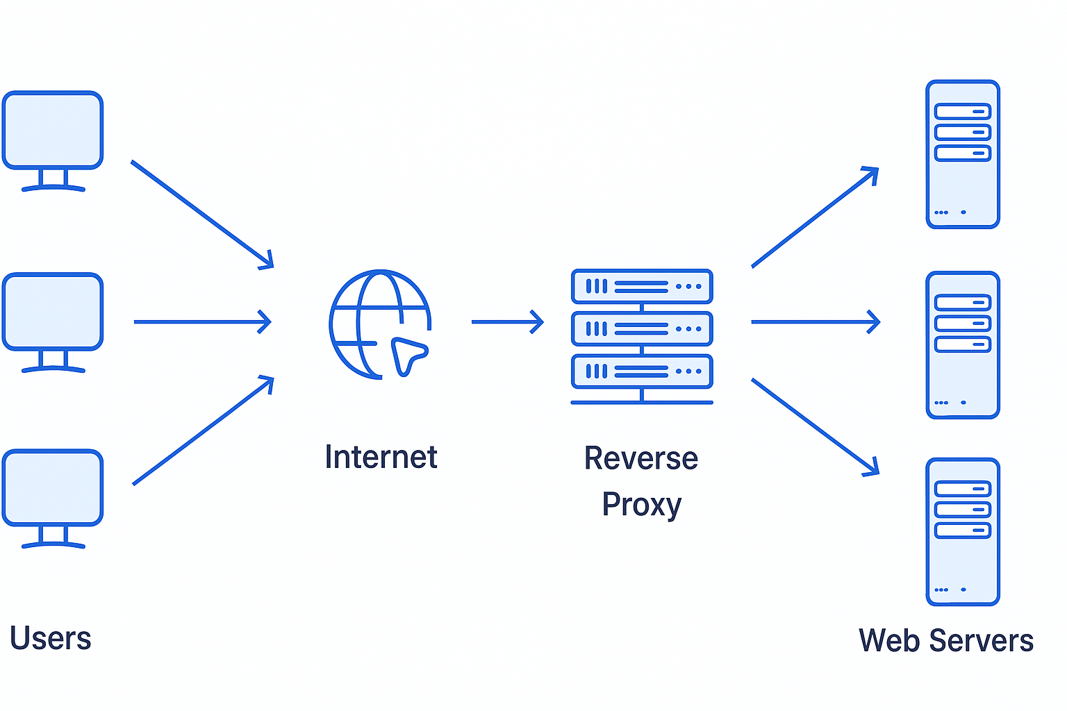 리버스 프록시는 서버 앞단에 위치하여, 클라이언트의 요청을 받아 실제 서버에 전달하고 응답도 다시 클라이언트에 전달하는 중간 서버이다. 클아이언트는 실제 서버가 아닌 리버스 프록시만 접하게 된다.