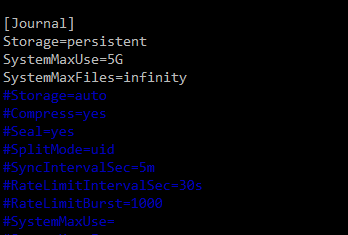 기본값은 대부분 주석처리되어 있으며, systemd는 내부 기본값으로 동작한다. 로그 보관 기간이 짧은 경우, 이 설정을 명시적으로 추가해야 한다.