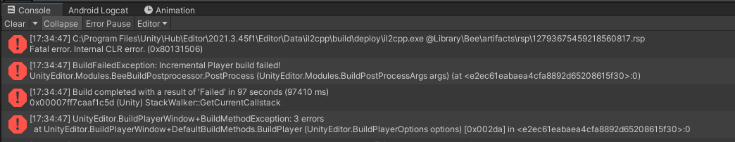 4. 빌드 실패 및 il2cpp.exe 시스템 오류