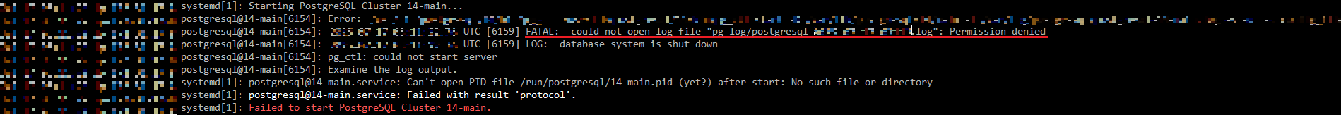sudo chown -R postgres:postgres /var/lib/postgresql/14/main/pg_log