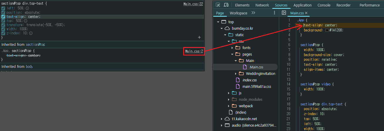 1. 크롬에서 실제 적용된 파일명/라인 확인