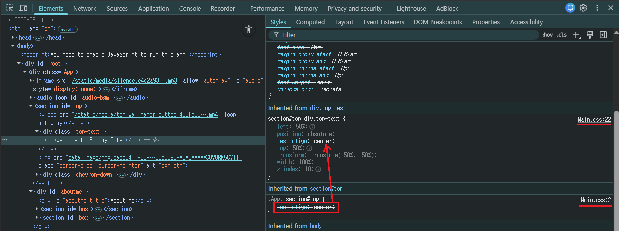2) DevTools 우측 "Styles" 패널에서 충돌 비교