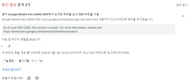 사용 중인 Google Mobile Ads(GMA) SDK 버전이 sunset에 접어들면서 SDK를 버전업했을 뿐인데,