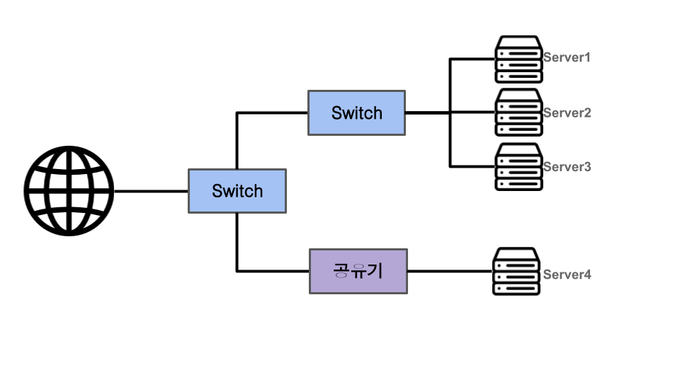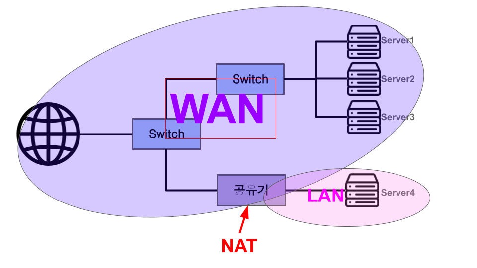 그도 그럴것이, 아래 그림과 같이 Server4는 공유기에 물려 있어서, 공유기의 NAT 기능에 의해