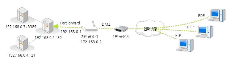 그래서 공유기를 포트포워딩 설정이나, DMZ설정을 해야했었다.