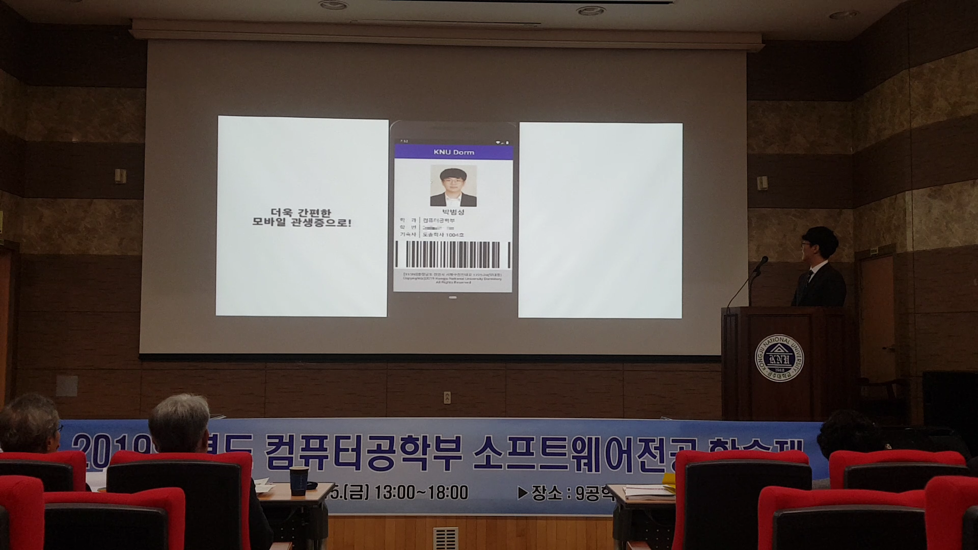 그렇게 학술제때에 여러 기업의 임원분들과 교수님들, 졸업반 학생들 앞에서 우리 팀이 개발한