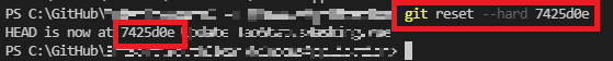 명령어를 실행 후 현재 HEAD가 7425d0e위치에 있음을 출력해준다.