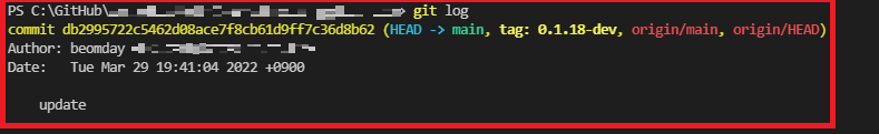 일단 git log 명령어로 현재의 로그를 보자.