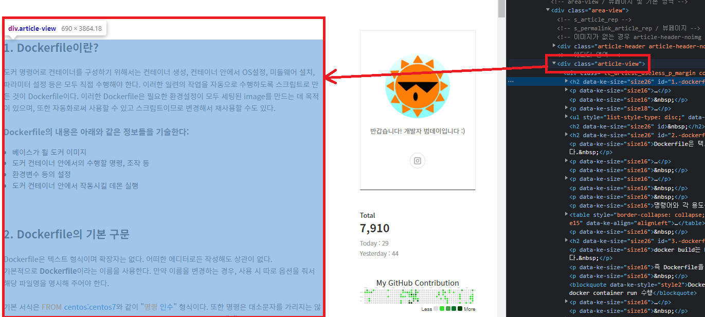 본인의 블로그는 작성되는 글이 "articla-view"라는 클래스를 가진 div안에 있어서
