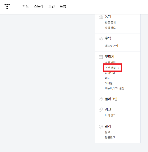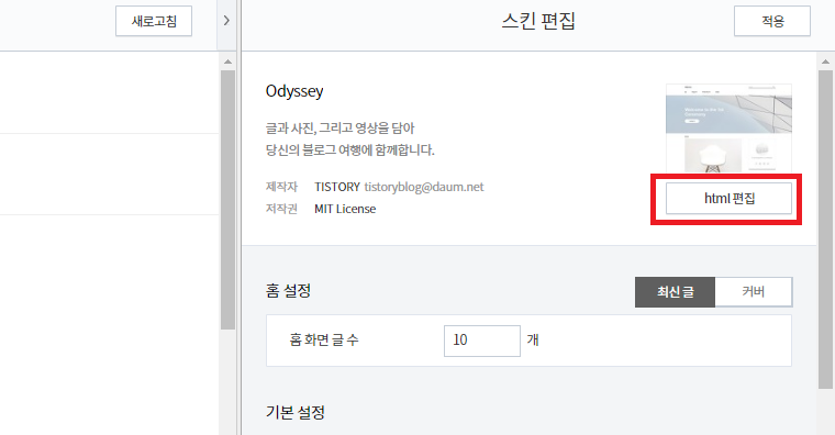 블로그 관리 > 스킨 편집 > HTML 편집으로 이동한다.