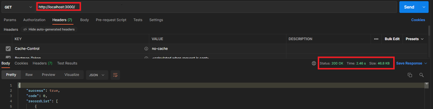 이후 REST API요청을 해보아, 정상적으로 리턴이 오는지 확인한다.