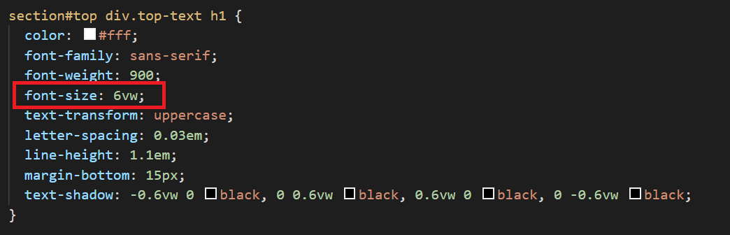 이를 해결하기 위해 font-size의 단위를 vw로 바꾸어주었더니, 글씨가 다음과 같이 보여지게 되었다.